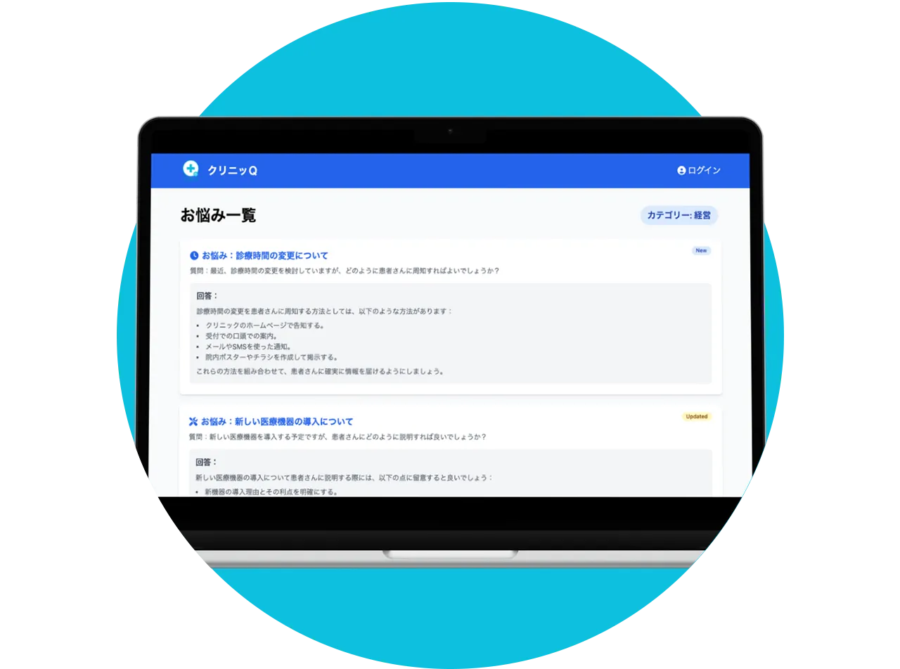 クリニッQは、開業医のための経営の悩みを解決するサービスです。